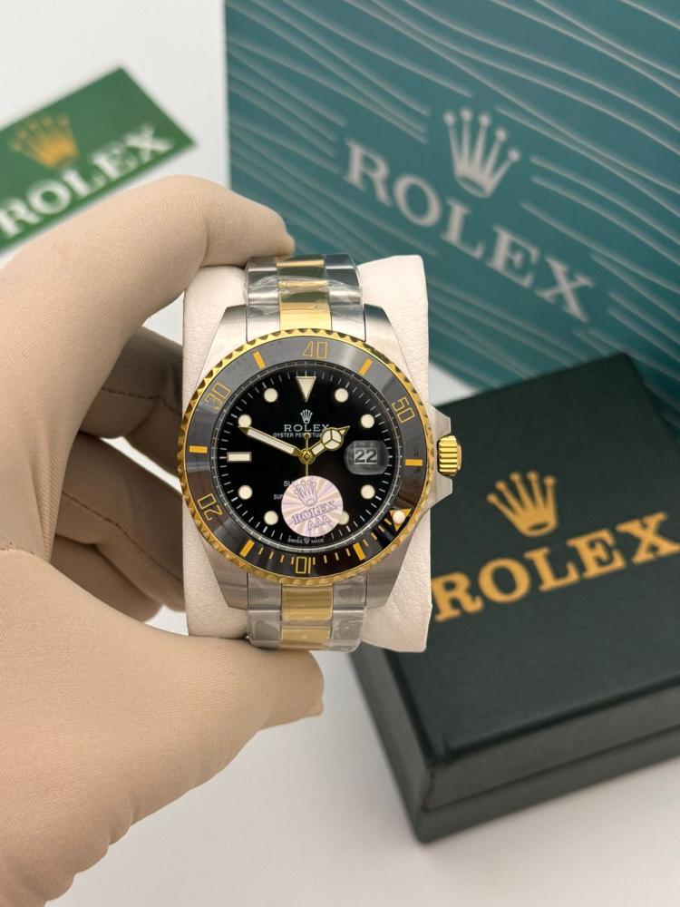 ساعة رولكس تُعتبر رمزًا للفخامة والدقة. تتميز بتصميمات أنيقة وعصرية، وغالبًا ما تحتوي على علبة مصنوعة من الفولاذ المقاوم للصدأ أو الذهب، مع زجاج سافير مقاوم للخدش. تتمتع بمينا واضح يعكس جودة الصناعة، وتستخدم آليات حركة داخلية دقيقة تضمن أداءً ممتازًا.