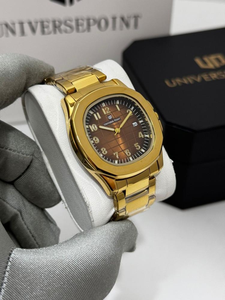 ساعة يونيفيرس بوينت هي تجسيد للأناقة العصرية والدقة العالية. تتميز بتصميمها المبتكر الذي يجمع بين الفخامة والتقنية المتقدمة. تأتي بعلبة وبكج انيق مناسب للإهداء ، مما يضفي عليها مظهراً أنيقاً وقوياً. ميناء الساعة مزين بعلامات ساعات واضحة وأنيقة بارقام عربية او انجليزية او يونانية، مما يسهل قراءة الوقت بلمحة. وتكتمل أناقتها بسوار جلدي فاخر أو سوار معدني متين، مما يمنح مرتديها شعوراً بالراحة والفخامة. تجمع ساعة يونيفيرس بوينت بين الجمال والدقة لتكون الاختيار المثالي للرجال والنساء الذين يسعون إلى التميز والأناقة في كل تفاصيل حياتهم.