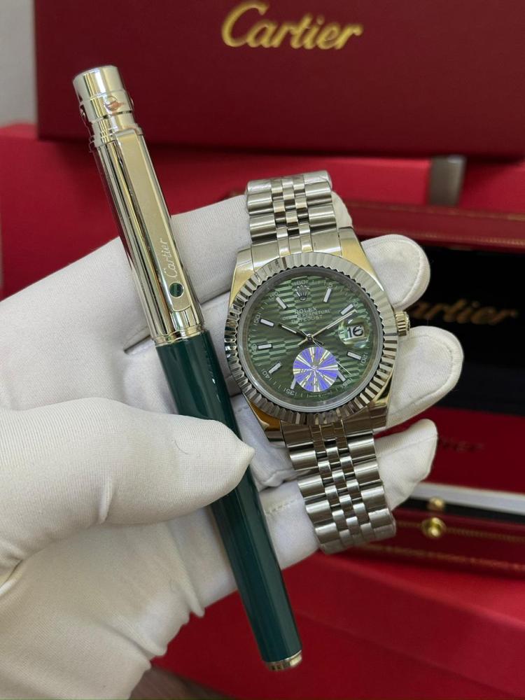 طقم فاخر يجمع بين هيبة الوقت وأناقة الكتابة. ساعة رولكس الأيقونية التي تعكس القوة والدقة، مع قلم كارتير المصمم بلمسات فنية راقية، ليشكلا معًا رمزًا للفخامة والتميز. اقتناء هذا الطقم ليس مجرد امتلاك لإكسسوارات، بل هو تعبير عن أسلوب حياة يقدّر التفاصيل ويحتفي بالرقي في كل لحظة.