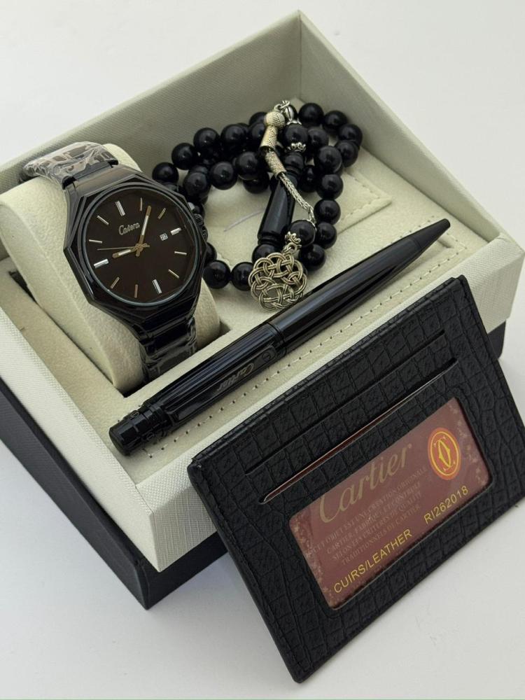 ويكمل الطقم قلم كارتير الفاخر الذي يرمز إلى الرقي والاحترافية، مع محفظة كارتير المصنوعة من أجود أنواع الجلد لتضفي لمسة من الفخامة العملية.